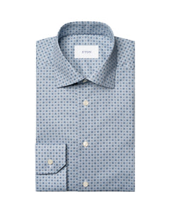 Eton Floral Effect Signature Twill Shirt Blue