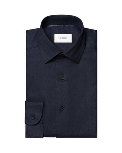 Eton Geometric Effect Textured Twill Shirt Blue